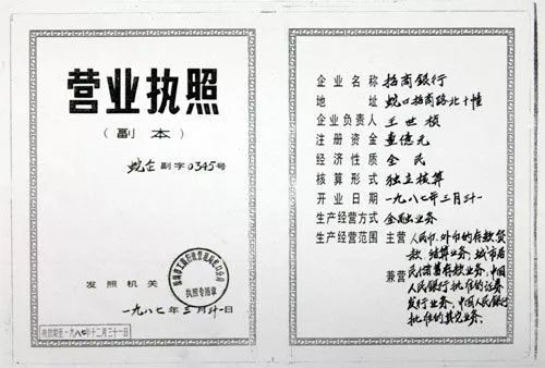 3个月后,中国人民银行发文《关于同意试办招商银行的批复》,同意试办招商银行,并确定“招商银行是深圳经济特区蛇口工业区投资的综合性银行”。