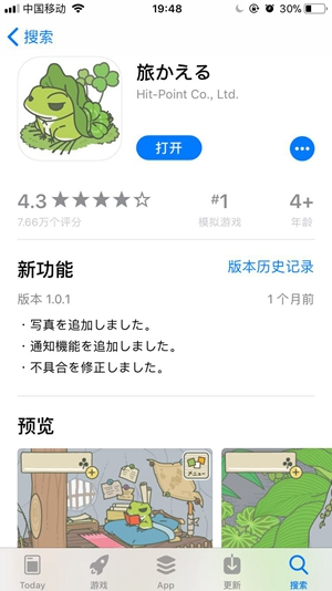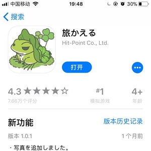 苹果应用商店的评分高达7万多个,《青蛙旅行》受欢迎程度一时无敌。