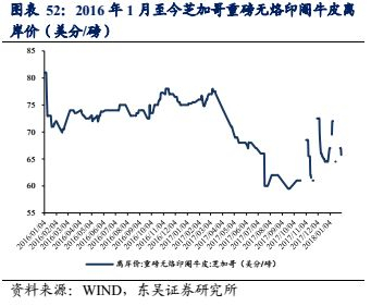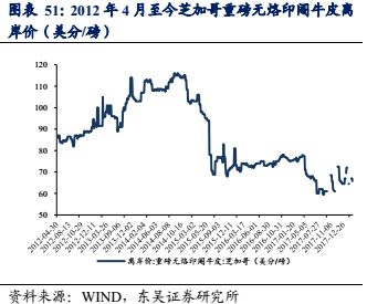 牛皮:重量无烙印眼牛皮芝加哥离岸价66.69美分/磅(本周变化-0.02美分/磅,本月变化-1.25美分/磅,过去一年变化-9.00美分/磅)