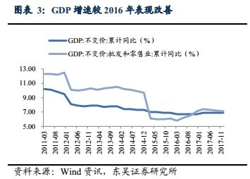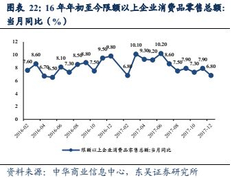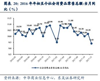 1)宏观经济2017年表现向好,利好消费。总体/批发和零售业GDP(不变价)截至2017年12月不变价累计增长6.9%/7.1%(16年同期为6.7%/7.1%),总体增速稳中有升。而作为经济增长先行指标克强指数在2017年的整体表现来看,截至2017年12月累计增长11.46%,高于2016年同期的7.50%,反映出宏观经济的乐观前景。宏观经济表现走强背景下,整体利好消费类行业。