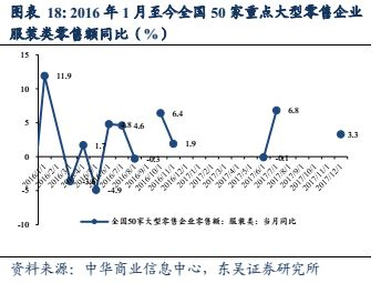 4.1 零售端:12月50家大型零售企业服装类销售同比增长3.3%