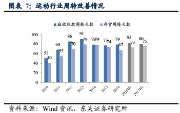 2)服装行业2011年以来渠道调整持续至今,可见成效。给出这样判断的标准主要有三方面:1)主品牌门店数量基本停止收缩;2)同店恢复正增长;3)渠道库存得到有效控制。包括女装、男装、家纺、运动行业在17年Q3的报表表现可以看到渠道库存出清卓有成效、周转明显改善。