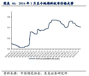 坯布:32支纯棉斜纹布5.71元/米(-0.01%) (本周变化0.00元/米,本月变化-0.01元/米,过去一年变化+0.02元/米)