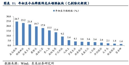 以森马服饰、海澜之家等为代表的传统服装品牌龙头开年以来领涨板块,我们认为包括其在内的多家龙头公司业绩增长较为确定,目前偏低的估值具备足够安全边际,值得关注。