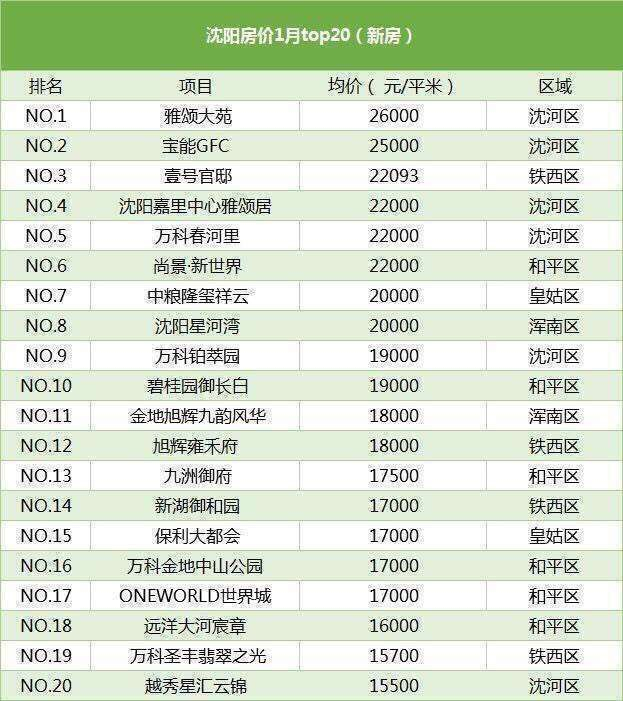 根据名单换算,1月沈阳20大最贵楼盘成交均价比全市整体平均房价高出1.84倍以上。