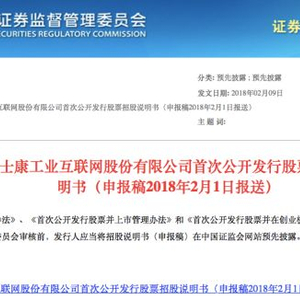 2月9日,证监会预披露富士康股份招股说明书(申报稿),并在同日反馈意见挂网。