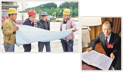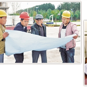 上图 李连成(右二)正在建筑工地指导工人工作。