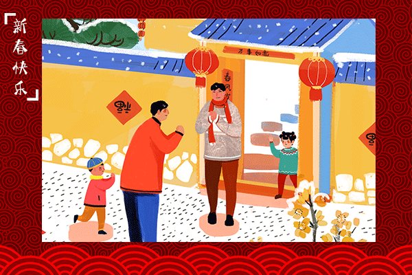 浙江大楷:我们那把拜年叫作走亲戚。以前都是一户亲戚一户亲戚地走,早上就赶过去,进门说一句新年快乐,然后一起喝喝茶吃吃东西聊聊天,做一天客,吃完饭再走。不过现在基本就吃一餐饭了,还有些人家是把亲戚一起叫了,集中在一天吃个饭,比以前简单了。大年初一拜年,我们肯定是要去邻居家转转,“远亲不如近邻”嘛。小孩子去拜年或者走亲戚,进门之后要给泡一杯糖水,这叫甜一甜,走的时候都会装一袋吃的,用红色袋子放上一些水果零食,现在有些人家还会这样,图个吉祥。