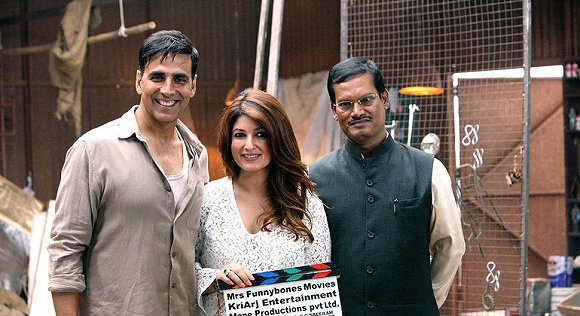 在《护垫侠》中饰演男一号的阿克谢·库玛尔、《护垫侠》制片人婷蔻·坎纳,以及阿鲁纳恰拉姆本人