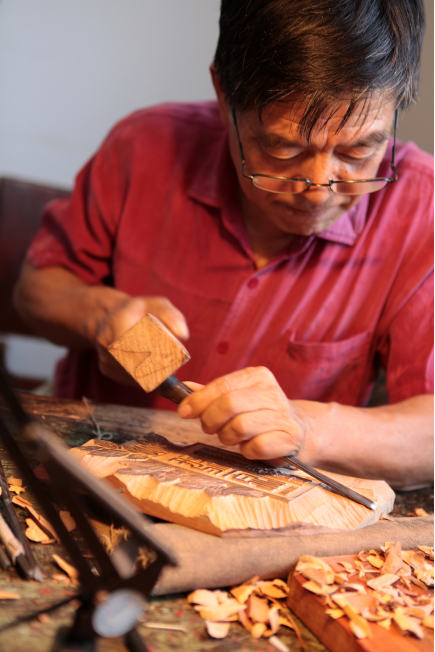 木板雕刻工具早年多为自行制作,有刻刀、净缝刀、文章锉、巩锉、刮刀、铲刀、敲锤等二十余件。后来,雕版师傅也在使用成套的专用雕刻刀。