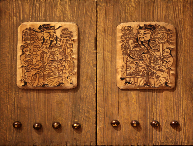 除此之外,还有各种文武门神。文门神有五子、九莲灯、福禄寿等;武门神常是戏曲中的忠臣义士和各类英雄好汉。不同人的房门常贴不同内容的门神:已婚子女辈房门贴天仙送子、连生贵子、三娘教子;中年人房门贴加官进禄、步步莲生;老年人房门贴松鹤延年和寿星之类;少年儿童居室房门贴五子夺魁、刘海戏金蟾等。