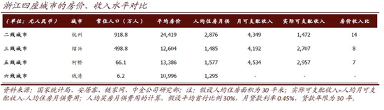 通过下图的对比,不难发现,在富裕的浙江低层级城市及农村,买房负担不大,生活成本较低,实际可用于消费的可支配收入较高。