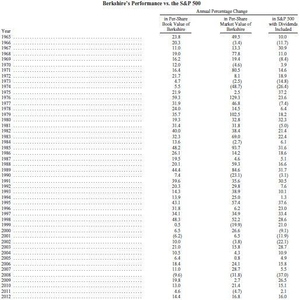 在巴菲特入主伯克希尔的53年间,每股票面价值从19美元涨至21.1750万美元(A类股),年均复合增长率位19.1%。