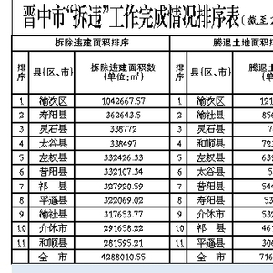 截至2月26日,晋中市“拆违”工作完成情况表已经公布