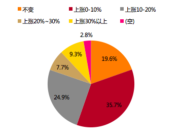 图:样本未来一年家庭收入涨幅预期分布情况