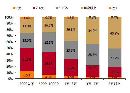 图:平均每月网购频率的分布情况