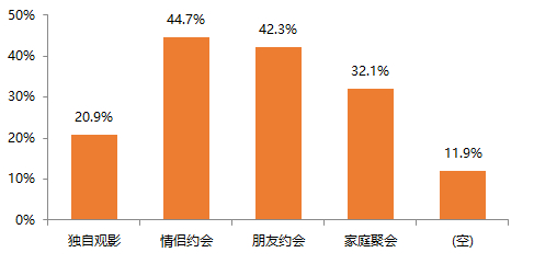 在观影同伴选择上,除情侣约会外,朋友约会及家庭聚会也成为主要观影场景。18年元旦档、春节档影市火热表现也进一步体现合家欢场景的发展潜力。