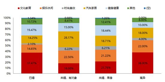 图:不同婚姻情况样本对于收入增加后优先支出的消费品类