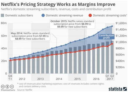 公司提供的流媒体服务不需要与有线电视、海外分销商以及电影院线分账,不需要担心广告收入和票房销售;相反的,公司只需要关注订阅用户的反馈,满足用户的经常性需求即可,公司不需要整出多大的动静,在平凡的生活里,做好用户的陪伴即可。