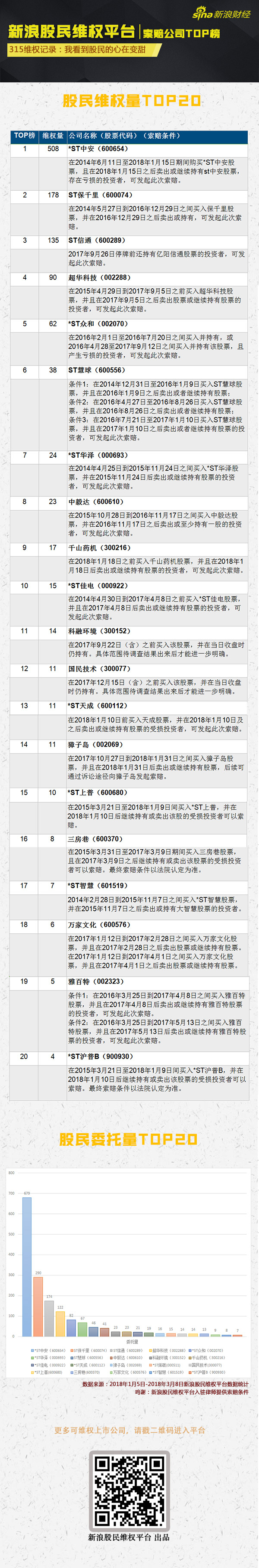 特此汇总了维权量最高的20家可维权上市公司,以供受损股民及时申请维权。详情请戳图: