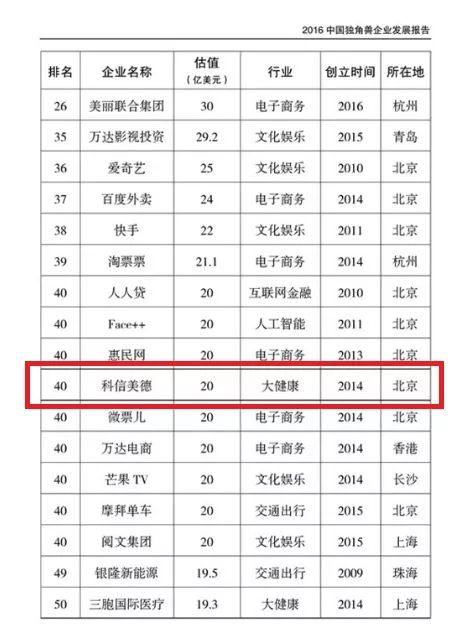 但野马财经也注意到,排名第40位的有一家名为北京科信美德生物医药科技有限公司(下称:科信美德)在明星企业云集的榜单中显得有些不为人知,这是一家什么样的公司呢?