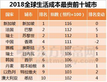 2018全球生活成本报告出炉:新加坡连续5年物价最高,最低的城市是?