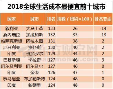 2018全球生活成本最便宜的十大城市虽然亚洲一些城市的生活成本在持续升高,但也有很多城市的生活成本依旧比较低。
