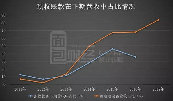 将年度预收款项余额与下期营收进行比较,结果更加直观:预收款在下期营收中的占比变化与锂电池设备营收占比变化基本同步。占比于2016年出现转折,主要是因2017年对珠海泰坦并表的影响。