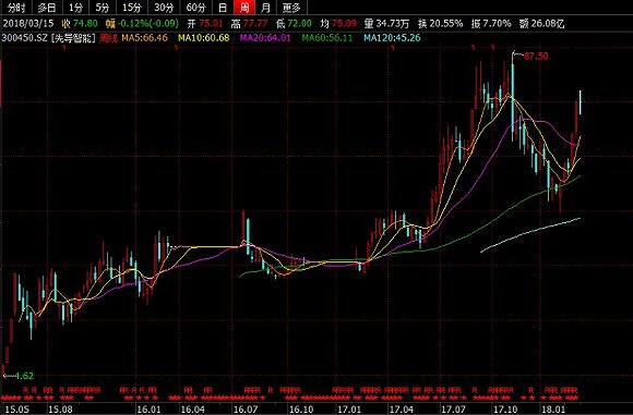 重要股东减持及解禁压力,加上市场担忧动力电池行业产能过剩影响上游设备生产商,2017年11月,先导智能股价停滞增长,持续下滑之后于2018年2月7日开始有所回升。以下为股价走势图: