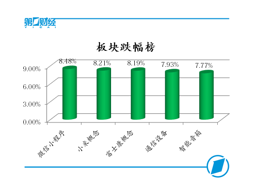 跌幅榜上,微信小程序、小米概念、富士康概念等板块跌幅居前。