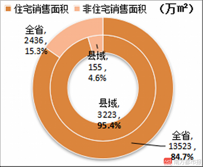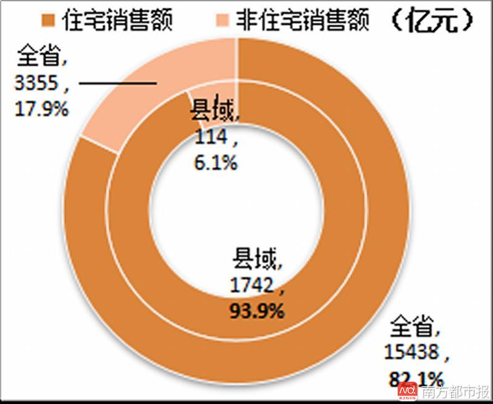 32个县商品住宅库存下降2017年,广东县域商品住宅销售面积3222.99万平方米,同比增长30.4%;销售金额1742.05亿元,同比增长50.9%;分别占商品房总销售面积、销售金额的95.4%和93.9%,占比分别较全省高10.7个百分点和11.8个百分点。
