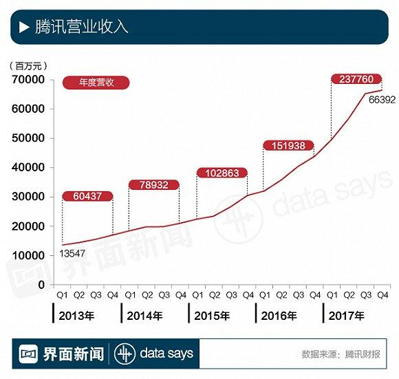 3月21日下午,腾讯控股(00700.HK,下称腾讯)公布截至2017年12月31日未经审核的第四季度综合业绩及经审核的全年综合业绩。界面新闻用10张图告诉你腾讯在2017年都干了些啥?