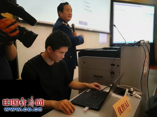 图为工作人员在为AI系统填写答案。经济日报—中国经济网记者朱国旺摄