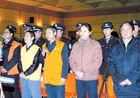 素 描原伊利高管郑俊怀(右一)等5人在庭审现场。