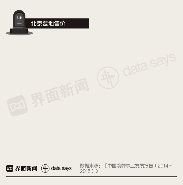 北京、上海等一线城市的墓地价格尤其高。《中国殡葬事业发展报告》数据显示,早在2015年,北京的低档墓售价就接近4万元,高档墓可以卖到几十万元。