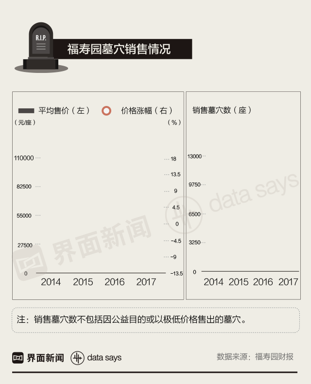 福寿园财报显示,2017年,福寿园墓穴的平均售价达到10.24万元/座,比上年增加1.5万元。其中,最高档的墓地平均售价达到42万元,比上年增加近10万元。