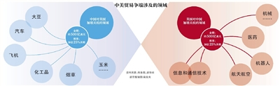 美国对原产中国的1333项商品加征25%关税;中国对原产美国的106项商品加征25%关税;涉及金额均为约500亿美元