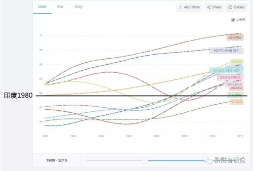 目前,这些国家的预期寿命基本都超过、甚至大大超过了1980年的印度。