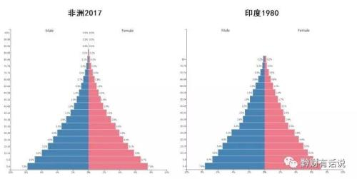 非洲2017年的人口年龄结构和1980年的印度类似: