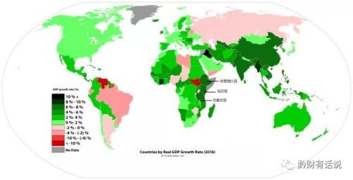 埃塞俄比亚只是中国在非洲影响力的一个缩影。下图为全球2016年GDP增速地图,东非三个颜色最深、增速最快的国家分别是:埃塞俄比亚、肯尼亚、坦桑尼亚——也是人们常说的“东非三巨头”。