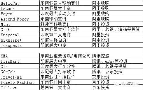 如下表所示,东南亚和印度的知名互联网公司已经被阿里腾讯买了个遍。