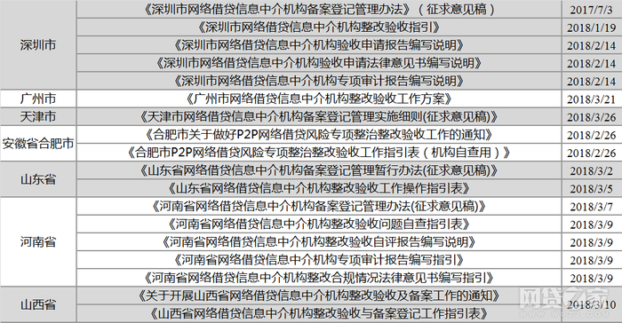 例如福建省要求完成平台于3月10日前提出验收申请;安徽省合肥市要求网贷平台最迟于3月15日前提交整改验收申请和相关材料;山东聊城也要求平台于3月15日前提交整改验收材料。