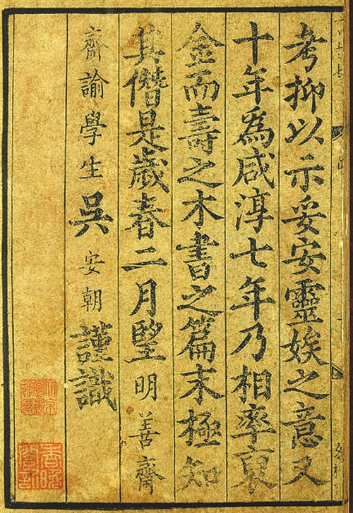 此本可贵之处还在于以明初洪武年间绍兴府公文纸背面刷印,纸背字迹,乃洪武九年嵊县申文,及洪武十一年绍兴府档册,说明书版明初尚存浙中,而印于彼时。纸背公文为研究当时民间贩盐、匿税等事提供了珍贵的公牍实物。我国元、明之前纸价颇贵,故常集官府废弃之档册公文,以背面刷印以降书价。公文纸印本作为我国古籍刻印本的一种特殊形态,向为藏书家、历史研究者所重视。