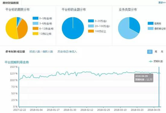 网贷之家数据显示,4月9日,善林财富的成交量为1142.64万。由于前日平台官网已无法正常进入,成交量骤降为438.59万元,待还余额为20.5亿平台参考收益率为12.52%。平台标的统计数据显示,善林财富的借款金额以0-20万为主,其中最大投资人待收是436.7万。