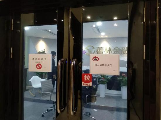 据了解,善林金融总部是前天上午被查封的。当天在岗的平台员工均被警方控制,直至下午6点左右才被放出,相关人员被告知“即日起解散,回家等消息。”自此,善林金融总部24小时都有人值守,目前4名公安人员在此驻守。