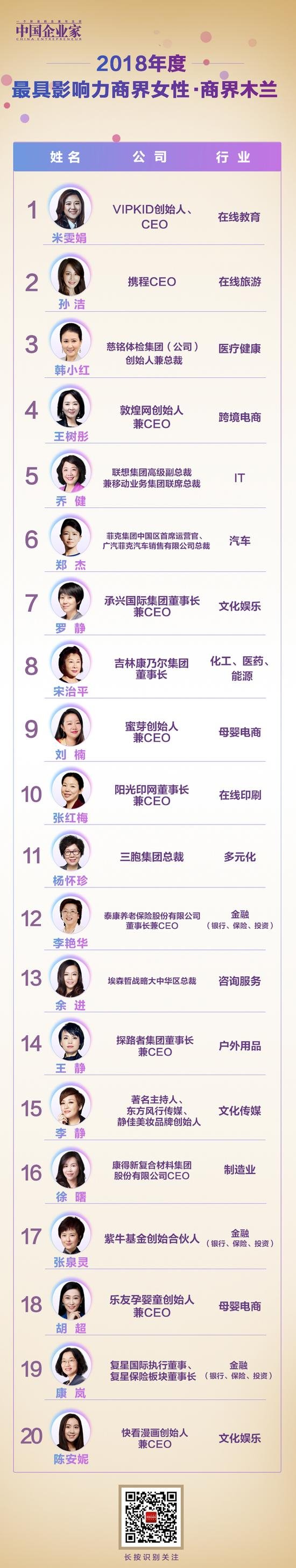 10位最具影响力商界女性掌管的公司市值(估值)超过12000亿元