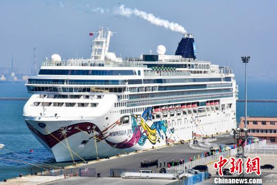中新网大连4月20日电 (记者 杨毅)总吨重9.3万吨的“诺唯真宝石号”邮轮20日来访大连港国际邮轮中心,这是大连港国际邮轮中心自2016年开港以来接待的最大吨级邮轮。