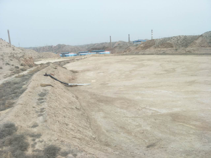 该尾矿库距离甘肃稀土厂区不足1公里,地下掩埋的数条管道直通库区。但是库区表面水迹已经蒸发,看不出有近期排放的迹象。