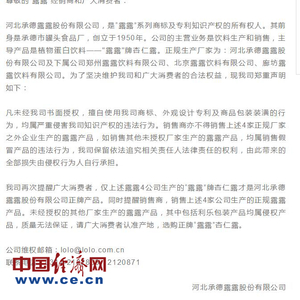 备受山寨困扰露露发打假声明:4家正规厂家之外产品均为假冒
