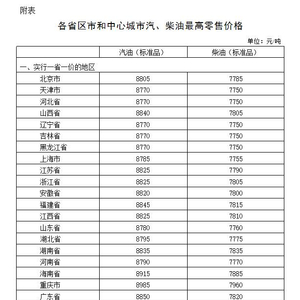附:各省区市和中心城市汽、柴油最高零售价格